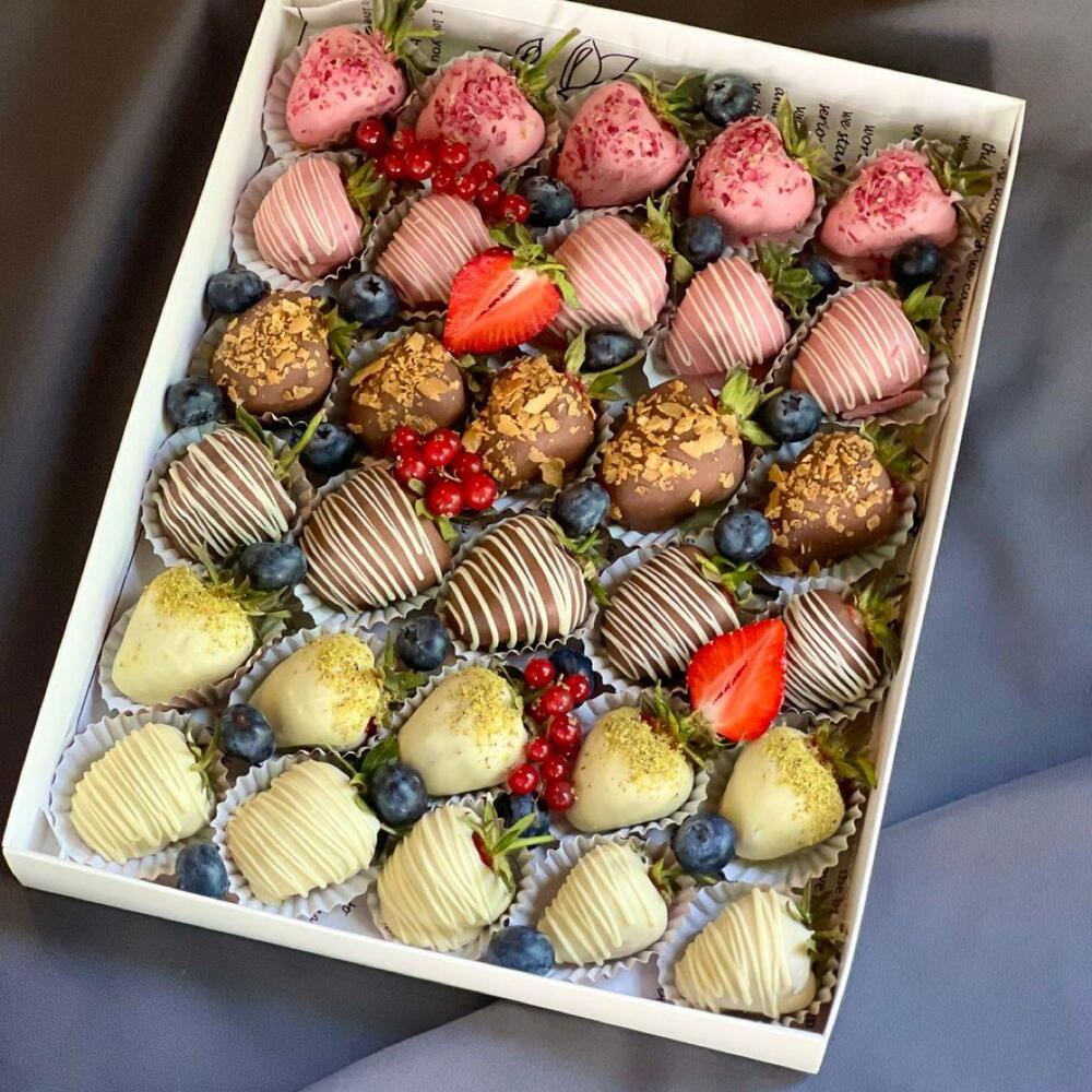 Роскошная коробка клубники в шоколаде🍫 нежные оттенки белого, молочного и розового шоколада🍓