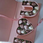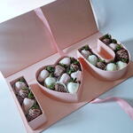 Состав: клубника свежая импортная, шоколад белый и молочный бельгийский, какао тертое, какао масло, сухое молоко, посыпки сахарные. Используется исключительно качественный бельгийский шоколад. Хранить в холодильнике не более 24 часов. Перед употреблением оставить при комнатной температуре на 15 минут. В количестве 21-22 шт. Количество может отличаться в зависимости от колибровки клубники, но коробка будет полная. Отличный подарок для мамы или девушки.