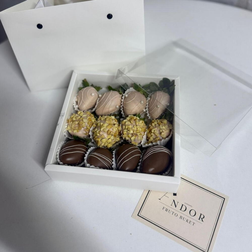 Құлпынайдың кәсіби безендірілуі, брендтік премиум орау (пакет, қорап), нұсқаулық. Сонымен қатар біз әрбір құлпынайды жуамыз, бұл сапаны дәлелдейді.