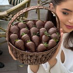 Свежая клубника, какао-масло, сухое молоко, сахар, какао тёртое, натуральная ваниль, эмульгатор (соевый лецитин).