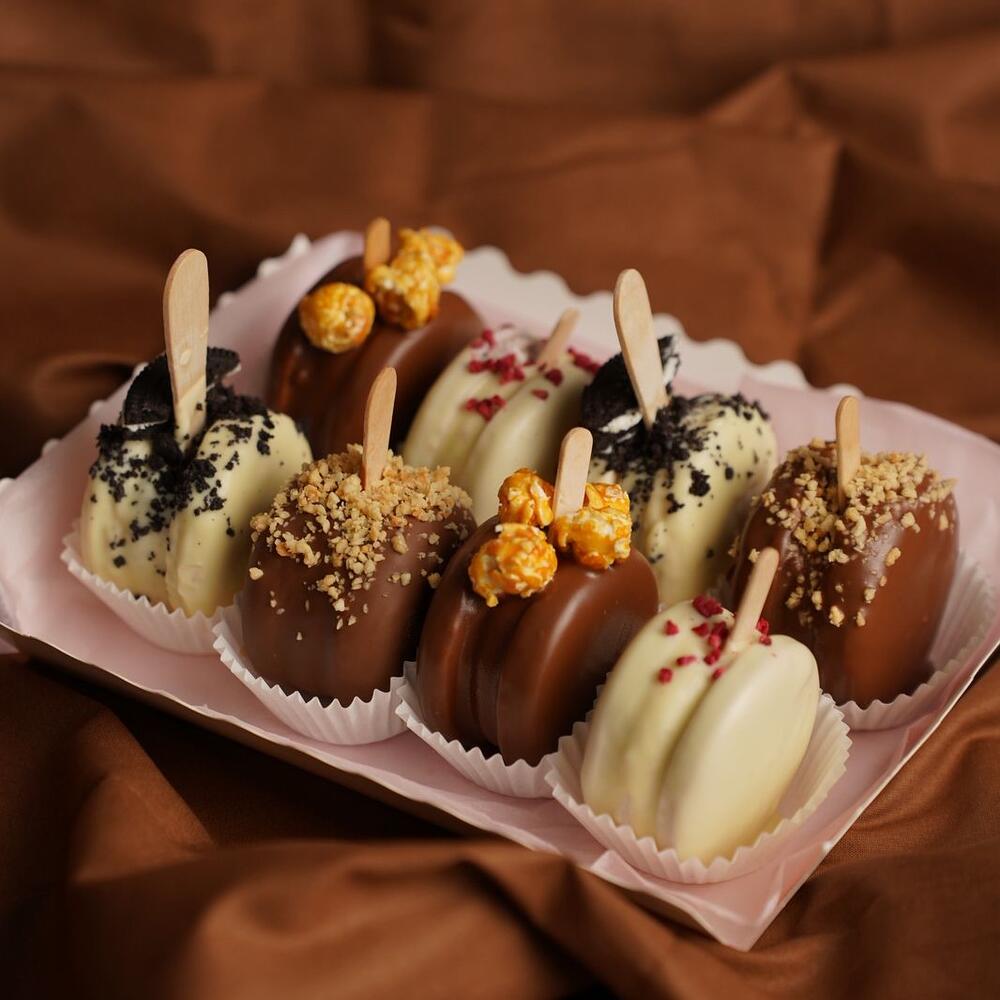 В набор 9 шт макаронс, состав макаронс - миндальная мука, сливки натуральные, бельгийский шоколад, арахис, миндаль, малина, фисташка.