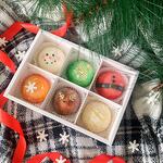 6 штучек моти в новогоднем оформлении. Вкусы: •Рафаэлло х2 •Сникерс •Клубничный милкшейк •Сливочный киви •Банан/клубника