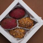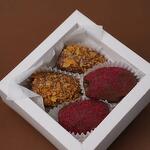 Набор состоит из 4-х королевских фиников, в начинке натуральный и полезный жент, Масло гхи и сахар. И все это в нежном молочном бельгийском шоколаде. А все это оформлено Вафельной крошкой и сублимированной малиной. В коробочке 4 шт.