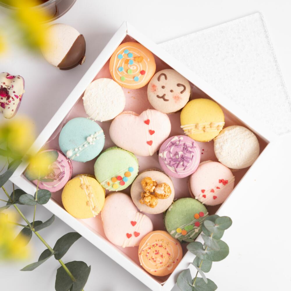 Макаронс- Минадальная мука, сливки натуральные, бельгийский шоколад, орехи и ягоды.