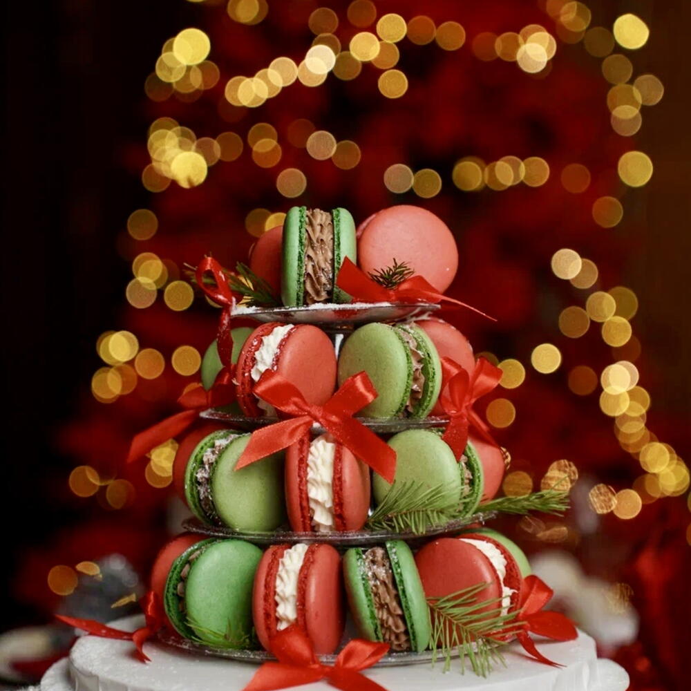 Башня из макаронс в ногоднем оформлении