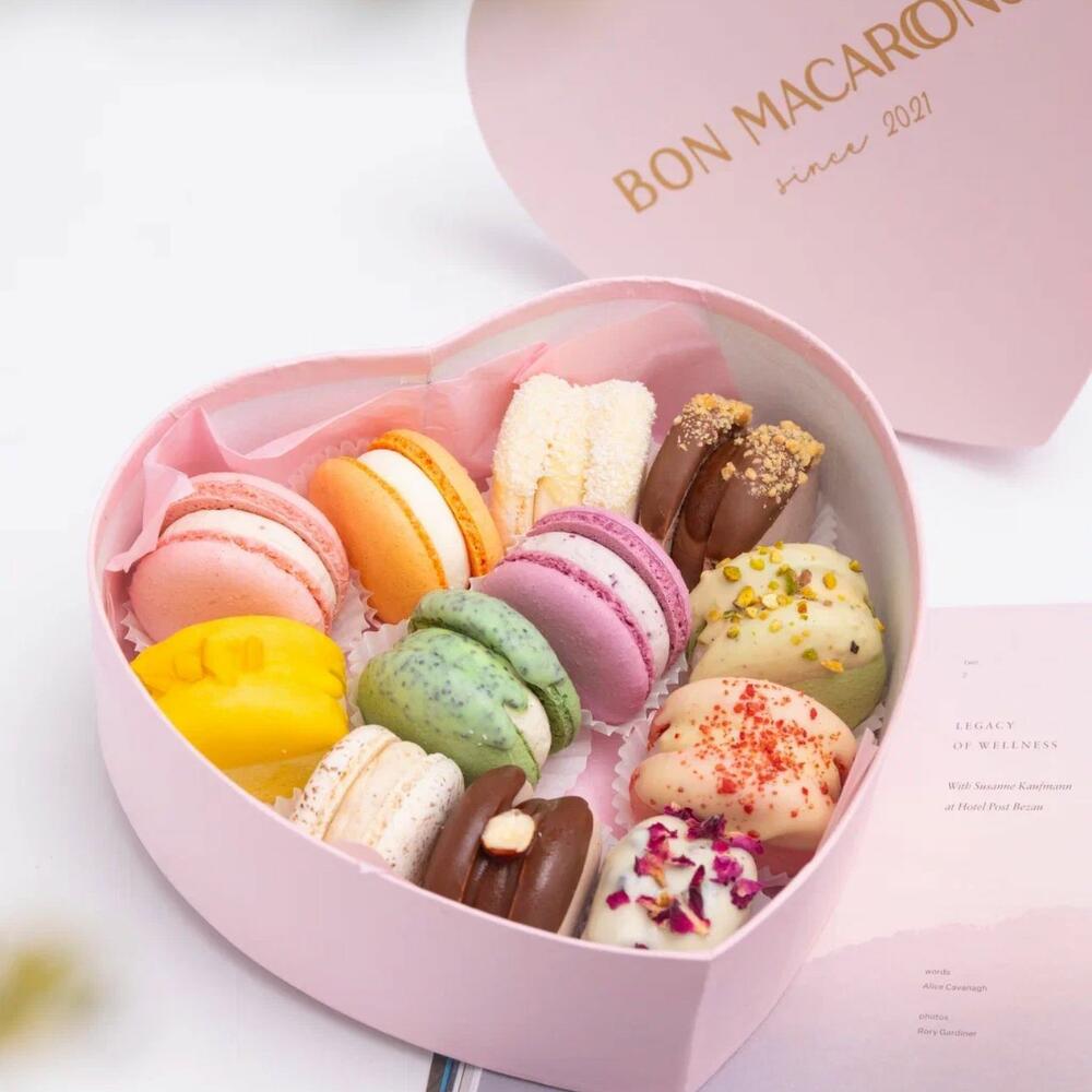 Макаронс- Миндальная мука, сливки натуральные, бельгийский шоколад, арахис, малина, голубика, ежевика, пюре манго, маракуйя.