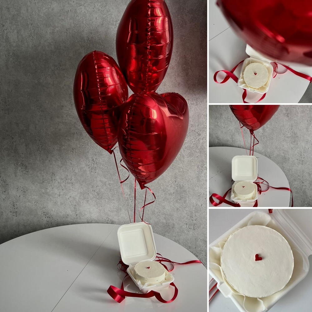 Бенто тортик с фольгированными шарами серде. Дизайн бенто можно поменять