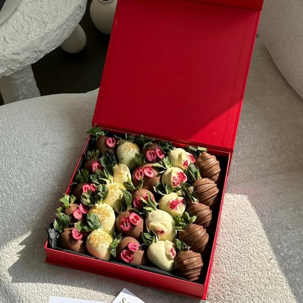 Шикарный набор Violet , который покорит ваше сердце с первого укуса ❤️ Обворожительная клубника в шоколаде окутает ваши чувства мягкими нотами и сладким послевкусием. В комплект входят 10 ягод в белом шоколаде от Callebaut и еще 10 в молочном, являющемся идеальным симбиозом лучших какао-бобов, мягкого какао-масла, нежного молока и утонченных ароматов. Сублимированная малина и клюква добавляют миксу ярких нот, а шоколадные завитки Mona Lisa украшают десерт, превращая его в настоящее украшение стола. Этот вкус побуждает закрыть глаза и наслаждаться каждым мгновением – все же это всего лишь 55-60 минут ожидания! Идеальный выбор для любителей изысканных сладостей!