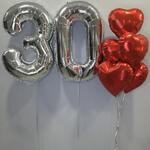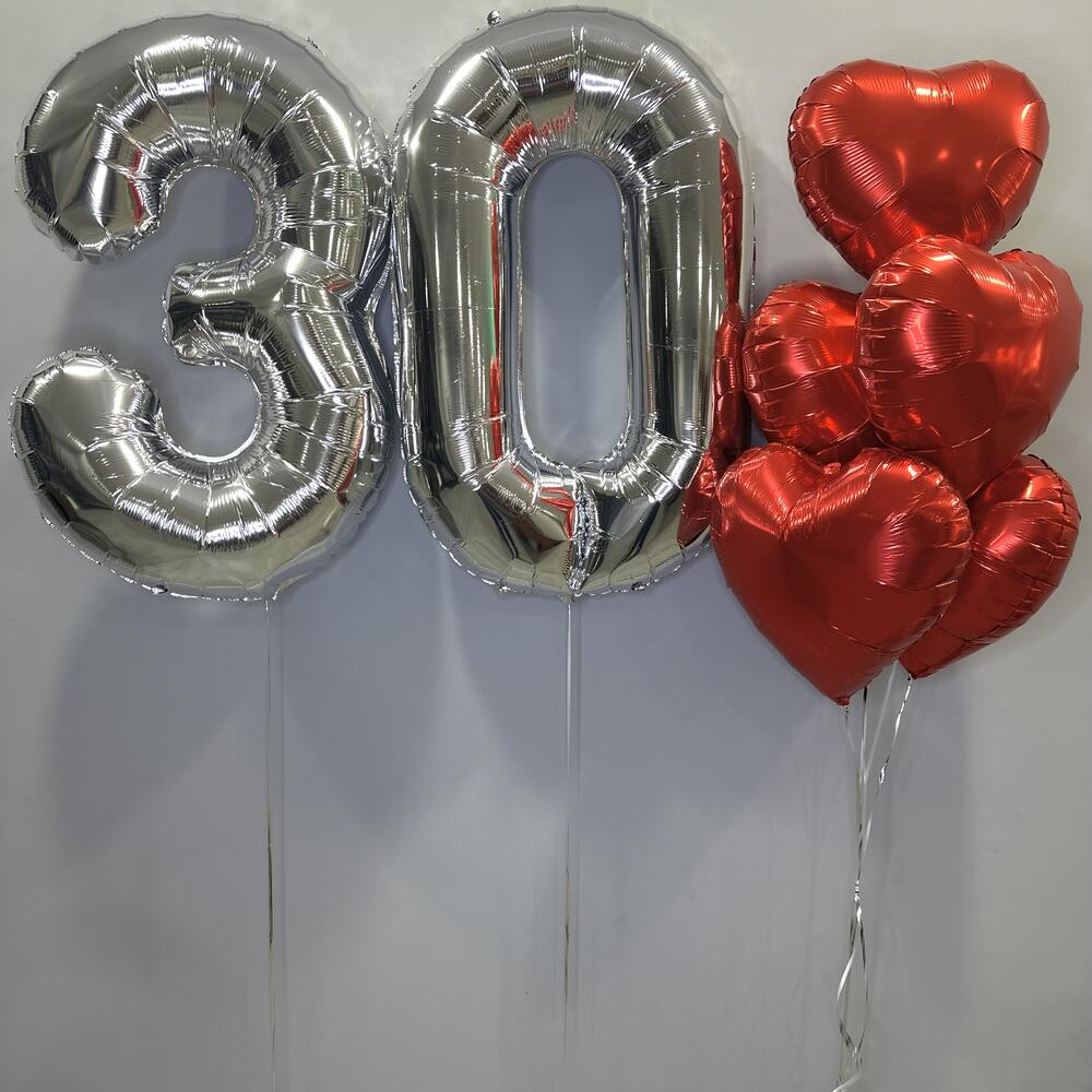 Цифры серебро ( 2 шт на выбор ) 5 красных сердец