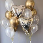 Шары хромированные - 6 шт, Шары латекс - 4 шт, Шары с конфетти - 2 шт, Шары фольга сердце - 2 шт, Надпись на сердце можно нанести любую