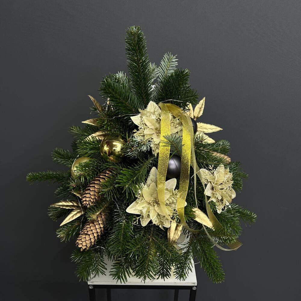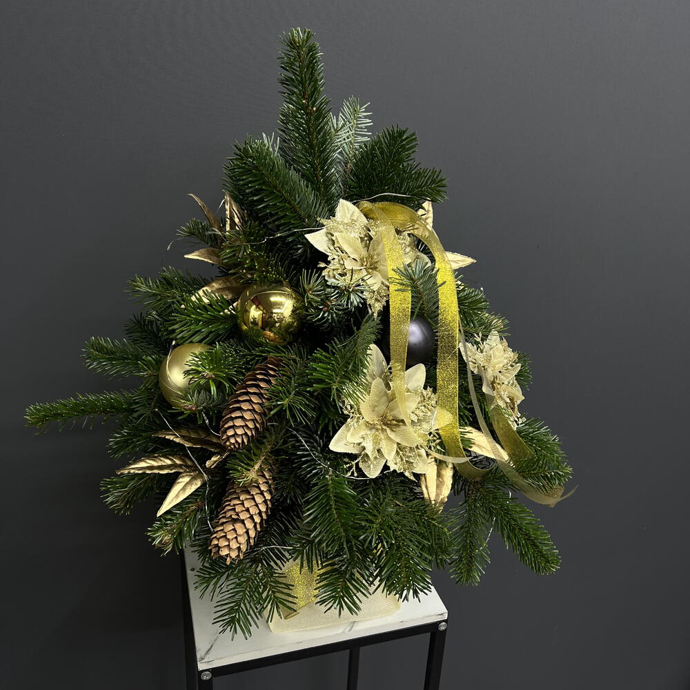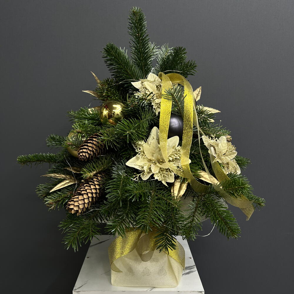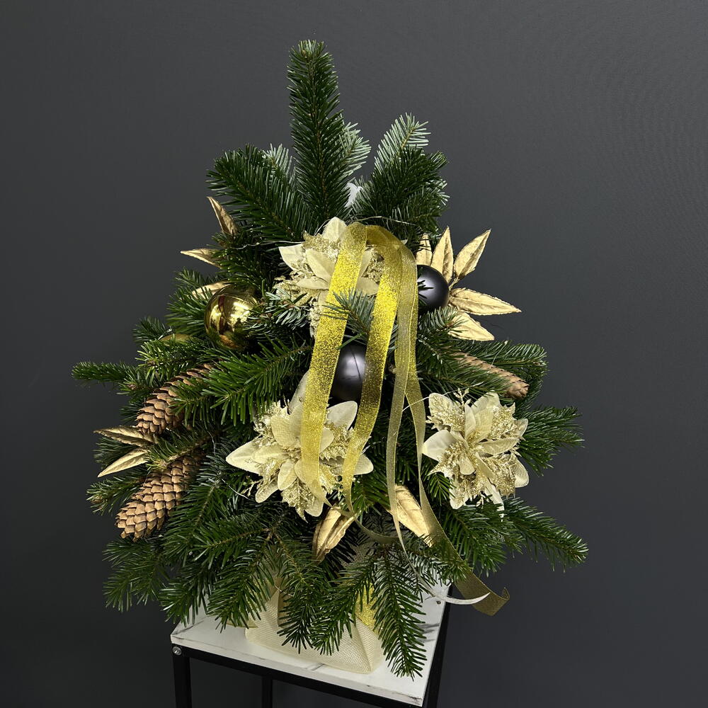 Премиальная ароматная ель с изысканными новогодними игрушками и декором. Натуральная хвоя наполняет пространство свежестью зимнего леса, а элегантные детали подчёркивают статус и вкус. Готовое решение для роскошной праздничной атмосферы.