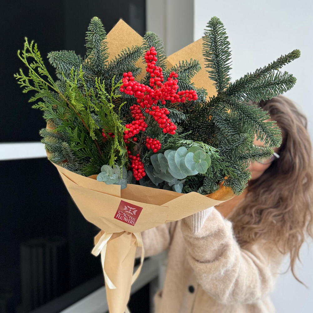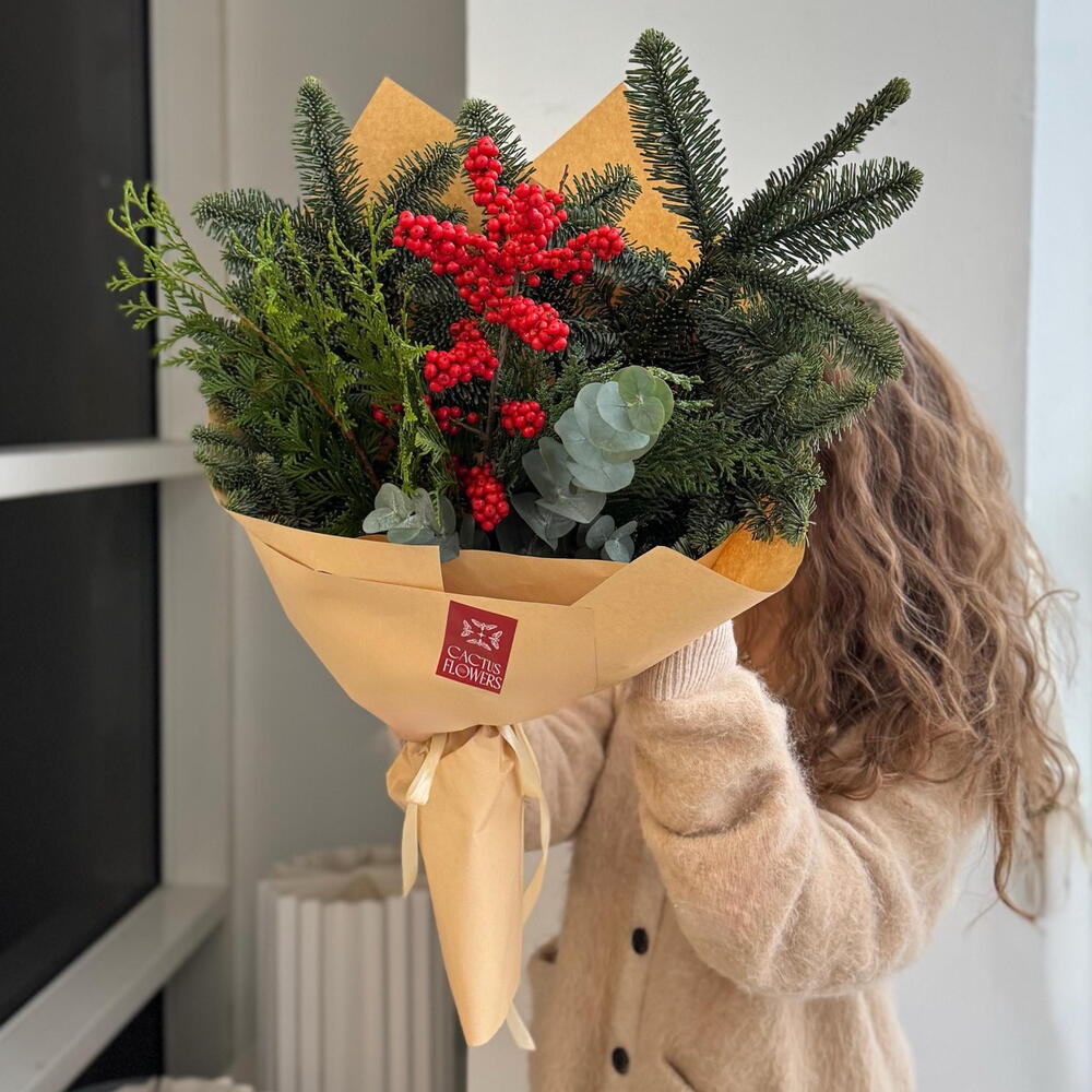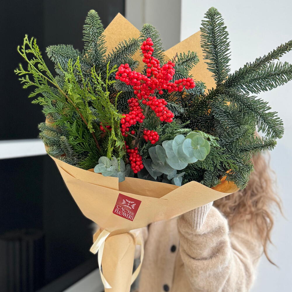 Ароматная зимняя охапка из микса хвои, эвкалипта и илекса