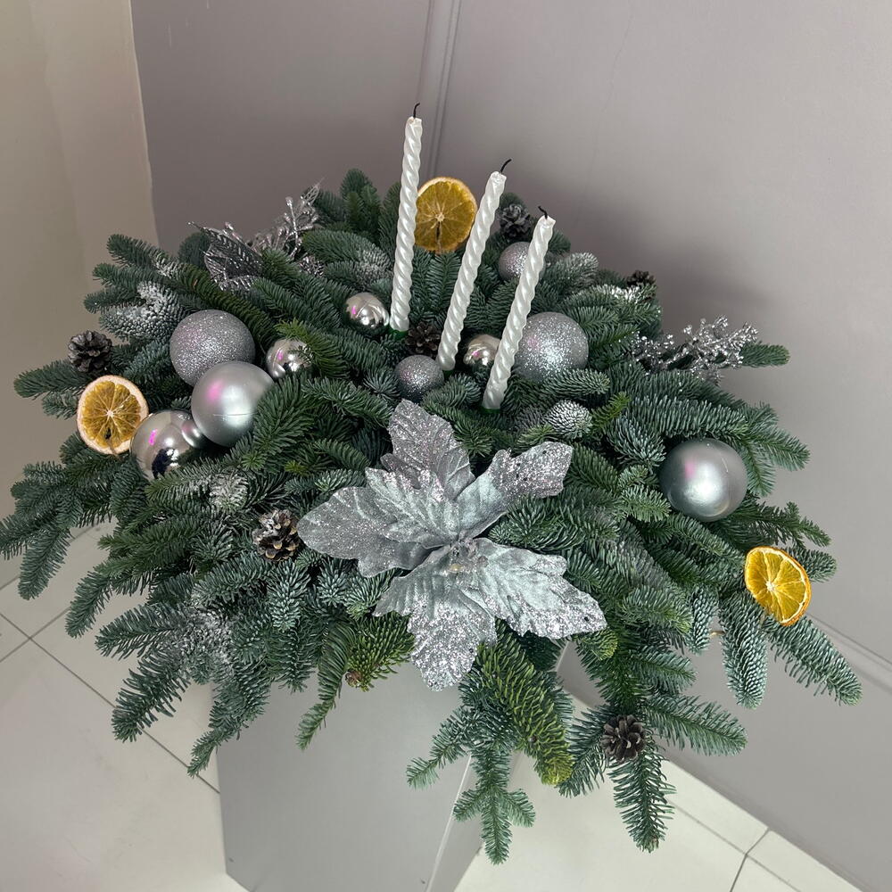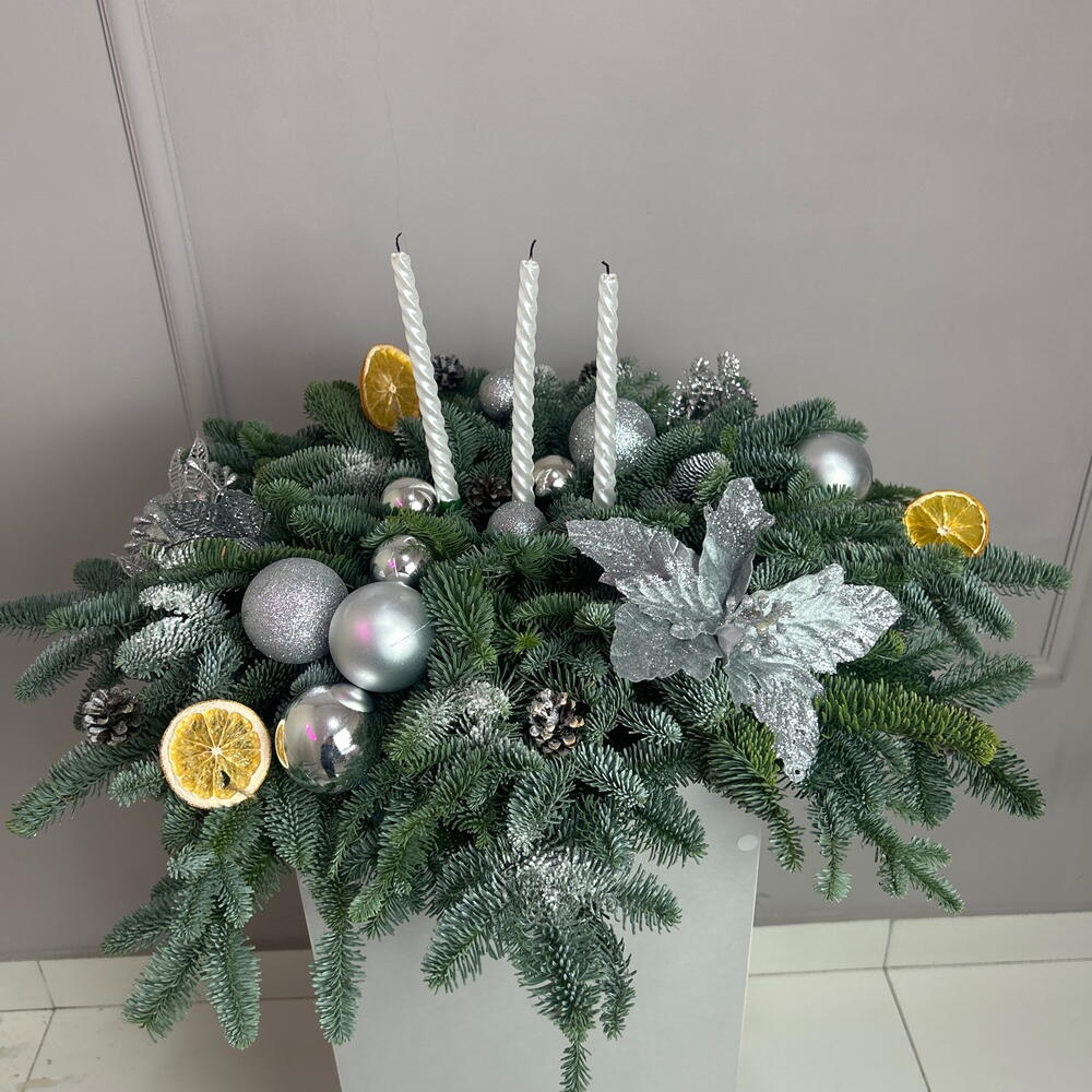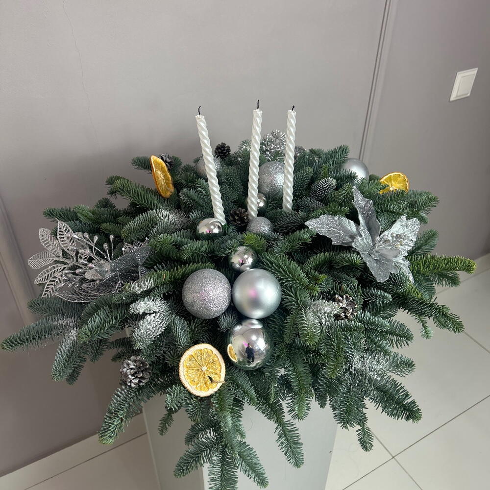 Нобилис - 4 дана Свеча новогодняя - 3 дана Игрушки елочные - 12 дана апельсин дольки сушеные - 3 дана