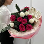 Идеальный зимний букет для тех, кто любит атмосферу праздника. Элегантное сочетание цветов и хвои создает особый уют и передаёт волшебство приближающегося Нового года