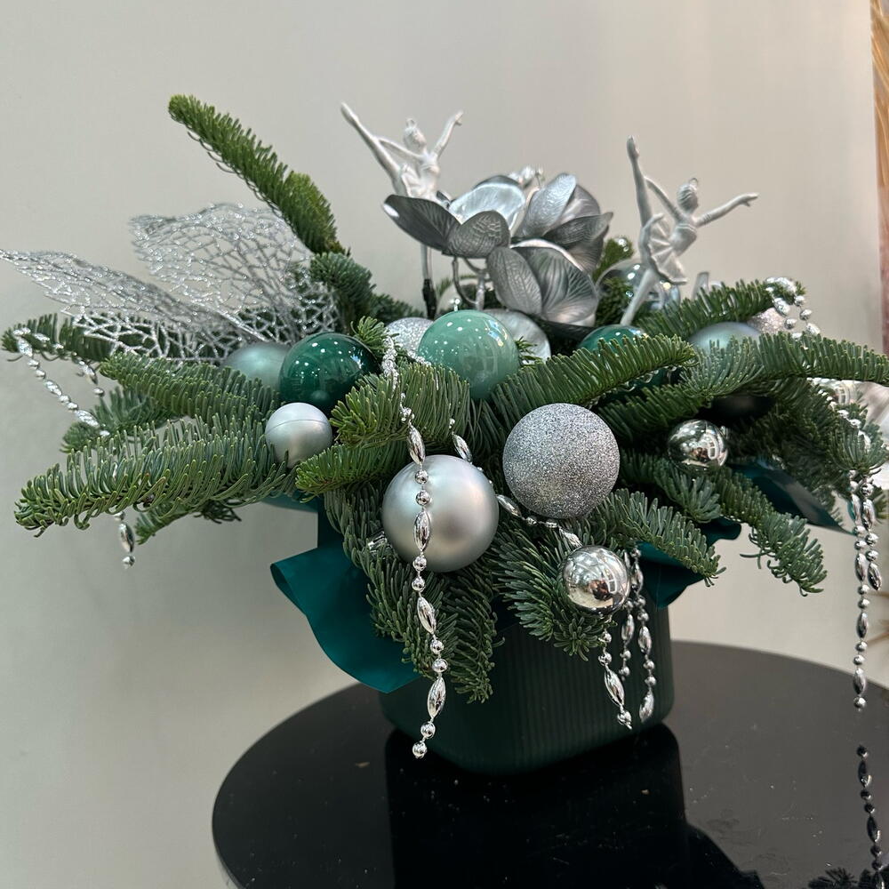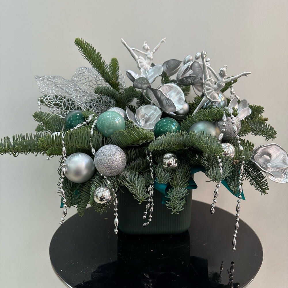 Новогодняя композиция в цвете морской волны с балеринами. Нобилис норвежский на оазисе