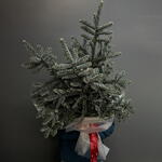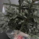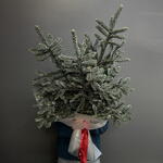 Стильный букет из натуральной хвои с густыми, пушистыми ветвями ели благородного серебристо-зелёного оттенка. Минималистичное оформление подчёркивает природную красоту и свежесть хвои, создавая атмосферу уюта и настоящего зимнего настроения. Букет наполнит пространство тонким хвойным ароматом и станет идеальным акцентом для новогоднего интерьера, подарком к праздникам или альтернативой классической ёлке в компактном формате.