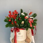 ✨ Композиция 185 — “Тёплый Зимний Очаг” Эта композиция создана, чтобы внести в дом уют, праздник и новогоднее волшебство. Нобилис 🌲 наполняет ароматом хвои, илекс 🔴 добавляет ярких праздничных акцентов, а две свечи 🕯️🕯️ создают атмосферу тепла и спокойствия. Нежный хлопок ❄️ и декоративные шарики 🎄 делают композицию особенно уютной и стильной. Полупрозрачная аква-бумага и красно-белые ленты 🎀 подчёркивают праздничный характер оформления. Всё это собрано в белой коробке 🤍, чтобы композиция выглядела аккуратно, премиально и была готова к дарению. Композиция 185 — идеальный новогодний акцент для дома или подарка, который создаёт настроение с первого взгляда ✨