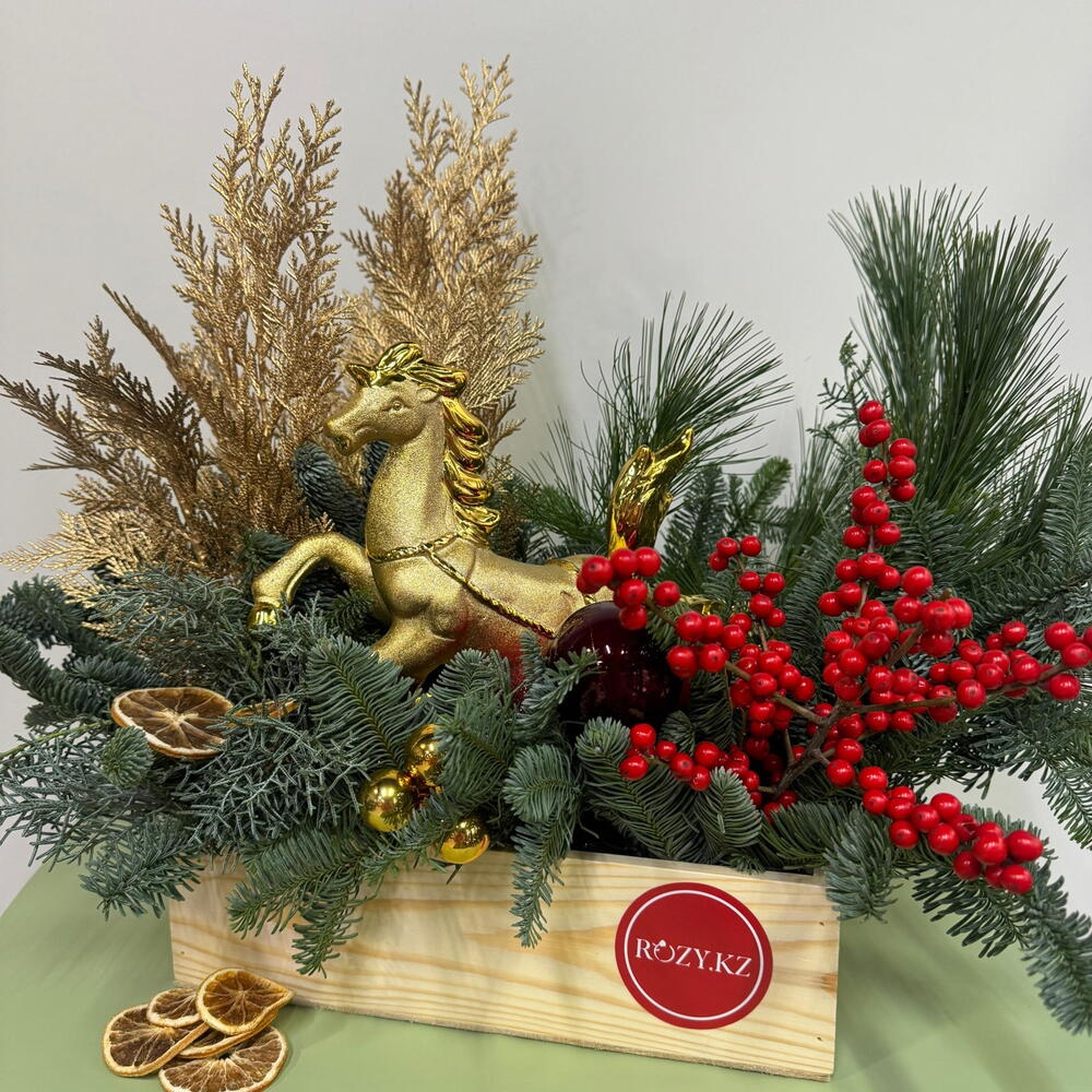 Флористикалық Оазис - 2 дана сушеный мандарин - 2 дана нобилис s - 1 дана туя крашеная ветка - 2 дана нобилис м - 1 дана нг игрушка 500 - 3 дана нг игрушка 400 - 3 дана илекс с - 1 дана ящик 5.5 - 1 дана пинус м - 1 дана конь декор - 1 дана