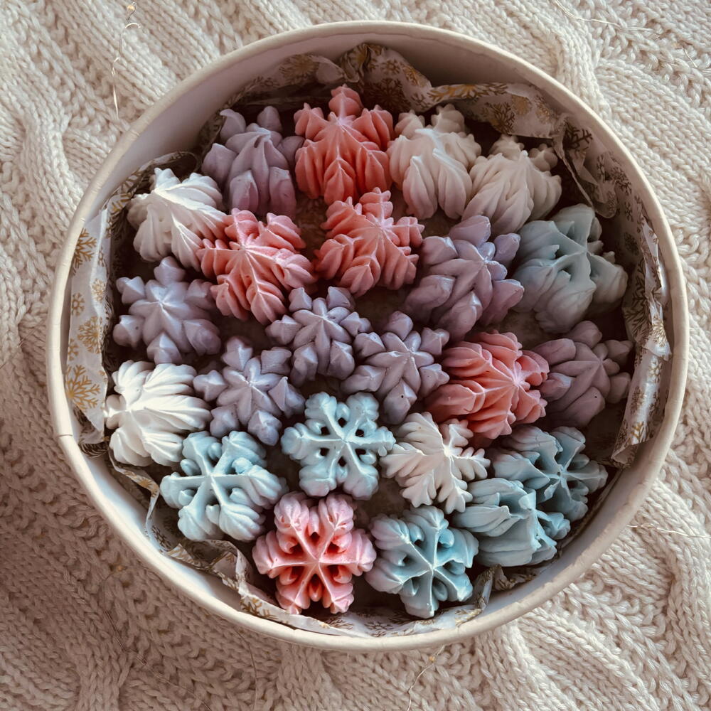 Зефирные снежинки - утончённая сладость зимы ❄️ Изысканные зефирные снежинки созданы для тех, кто ценит тонкий вкус и безупречную подачу. Нежная, шелковистая текстура буквально тает во рту, раскрывая мягкую, гармоничную сладость без лишней приторности. Каждая снежинка результат аккуратной работы и внимания к деталям. Элегантная форма и безупречный внешний вид превращают зефир в эстетическое удовольствие, а стильная коробка подчёркивает премиальный характер продукта. Этот десерт идеально дополнит неспешное чаепитие, станет изящным комплиментом или роскошным подарком к зимним праздникам. Преимущества: премиальный зефир с воздушной текстурой деликатный, сбалансированный вкус изящная форма снежинок подарочная коробка с эффектной подачей идеален для подарка и особых моментов Зефирные снежинки — когда сладость становится искусством.
