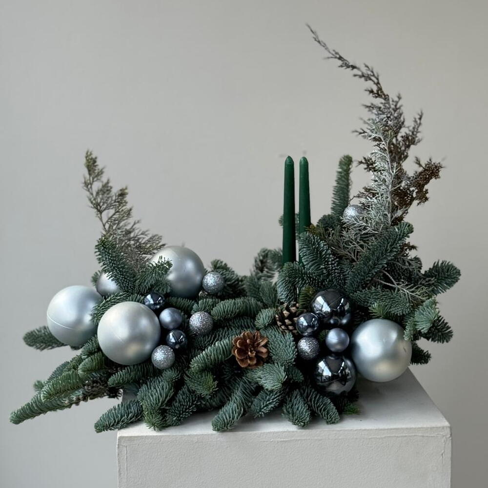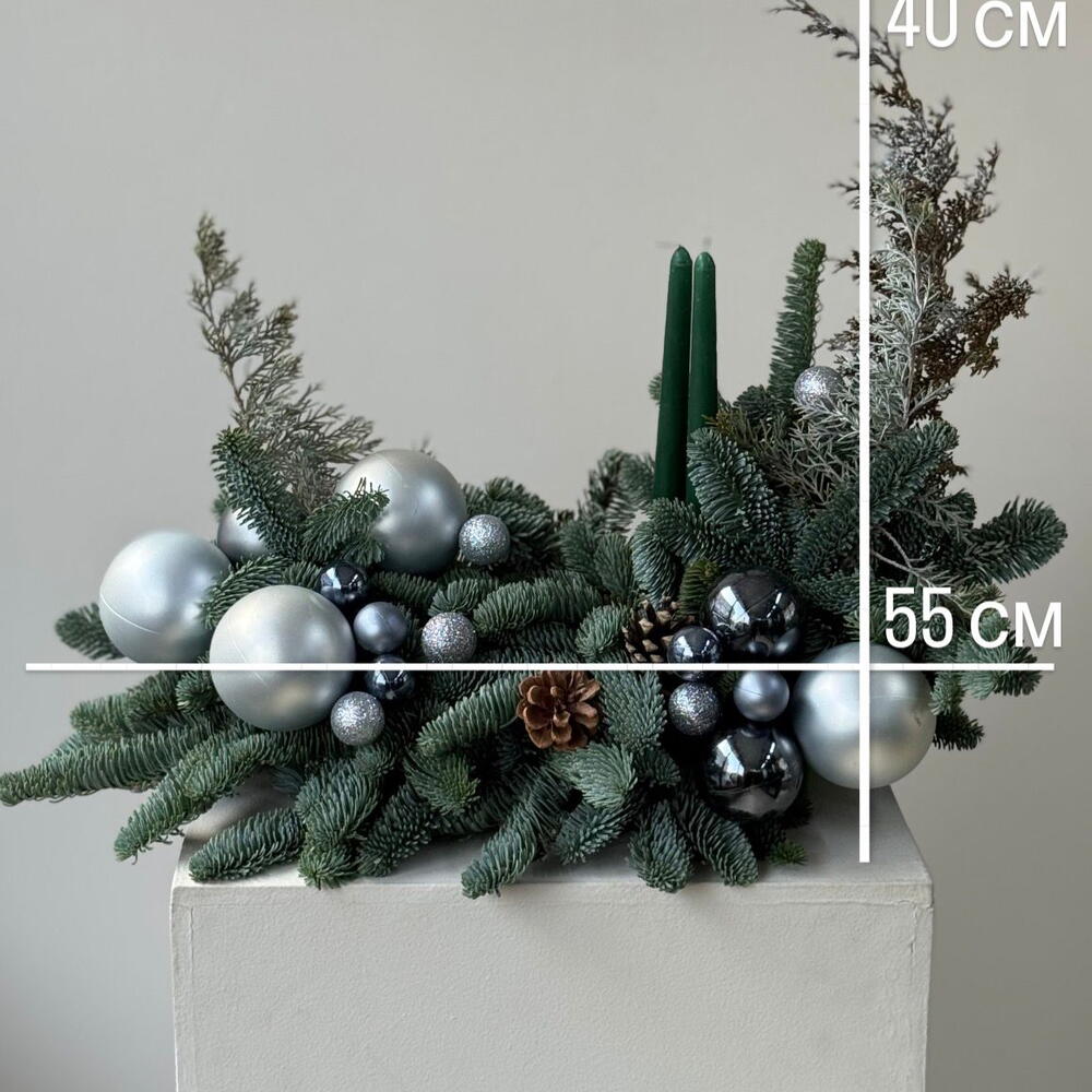 Нобилис - 2 дана Игрушки елочные - 20 дана Можжевельник - 2 дана Шишка Ели - 2 дана свечи немецкие - 2 дана