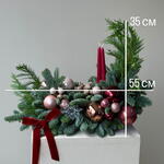 Лента бархатная - 1 дана Нобилис - 2 дана Игрушки елочные - 19 дана снежинка декор - 2 дана шишки декоративные - 1 дана туя натуральная - 2 дана свечи немецкие - 2 дана