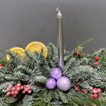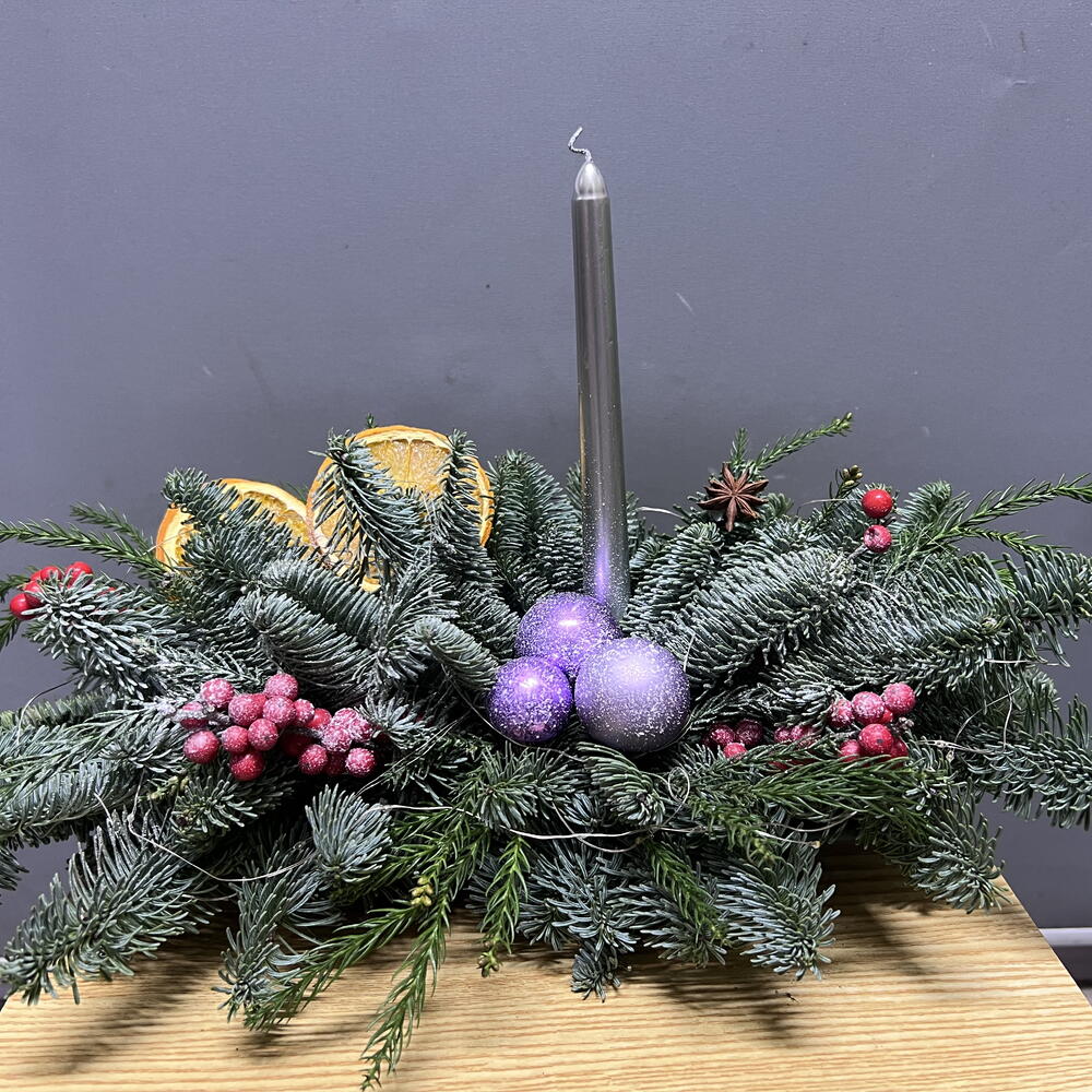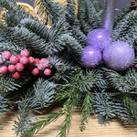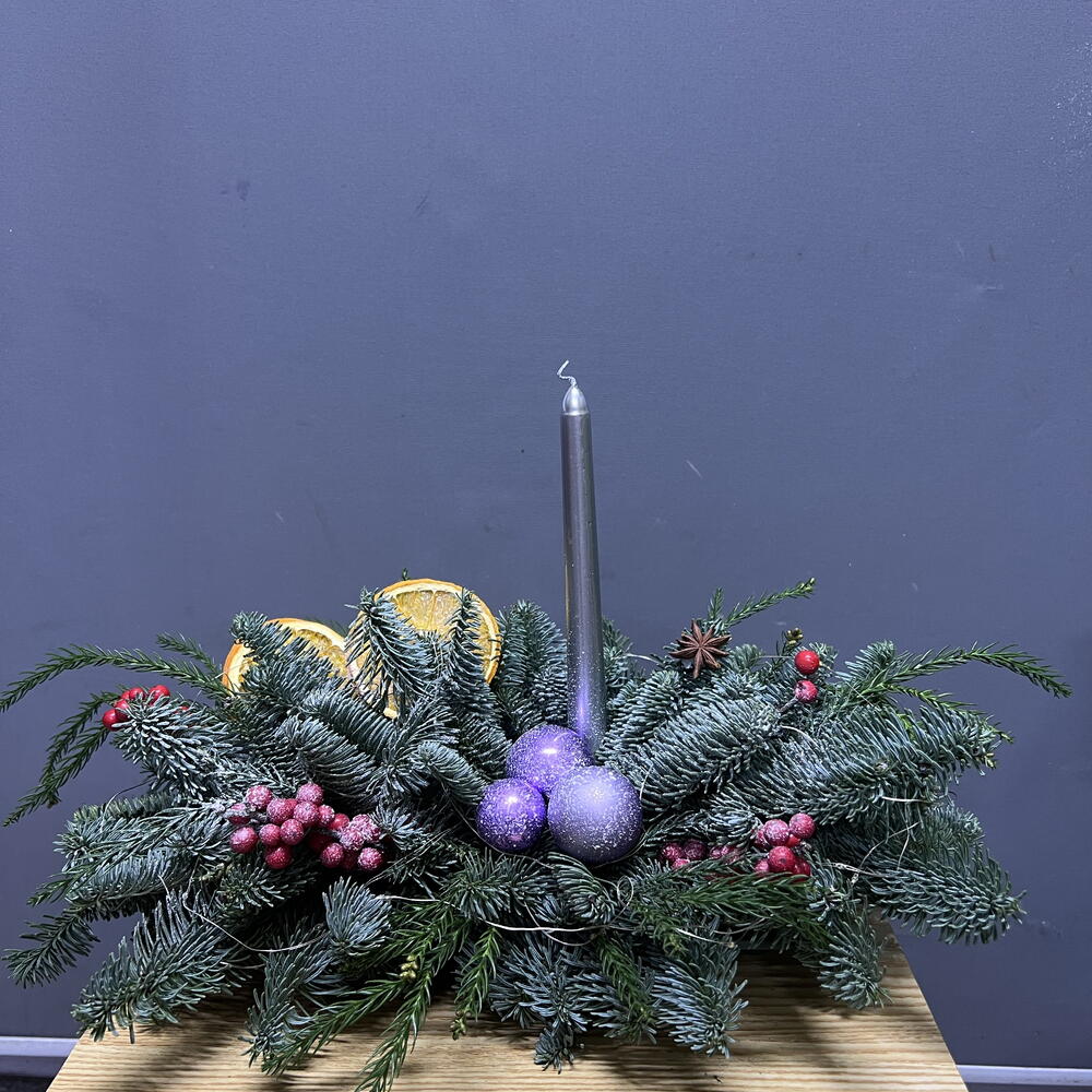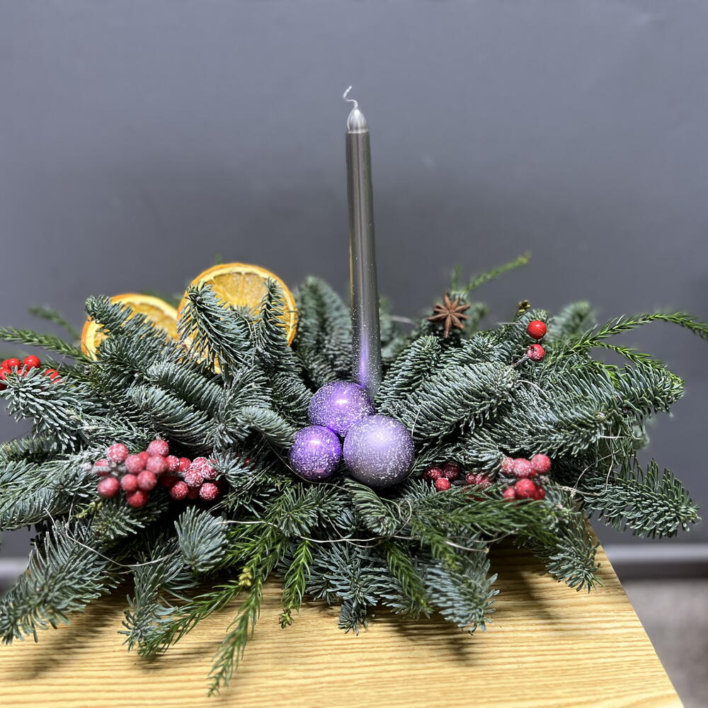 Үстел үстіндегі жаңа жылдық нобилилер мен шамдардан жасалған композиция қысқы кештің жайлылығын жасыл желектермен бейнелейді. Қарағайдың хош иісі үйді мерекелік сезімге бөлейді, ал жылы шам жарығы тыныштық пен ғажайыпты күтуді оятады. Бұл жай ғана декор емес, Жаңа жылдың тыныш, жылы сәті.
