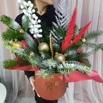 Свечка - 1 дана Игрушки елочные - 11 дана пампа шөбі - 2 дана Нордман - 7 дана ягоды декоративные белые - 1 дана папоротник искусственный ветка - 1 дана