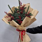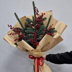 Атласты таспа - 1 дана Дизайнерлік қаптама - 5 дана Нобилис - 3 дана илекс красный искусственный - 4 дана