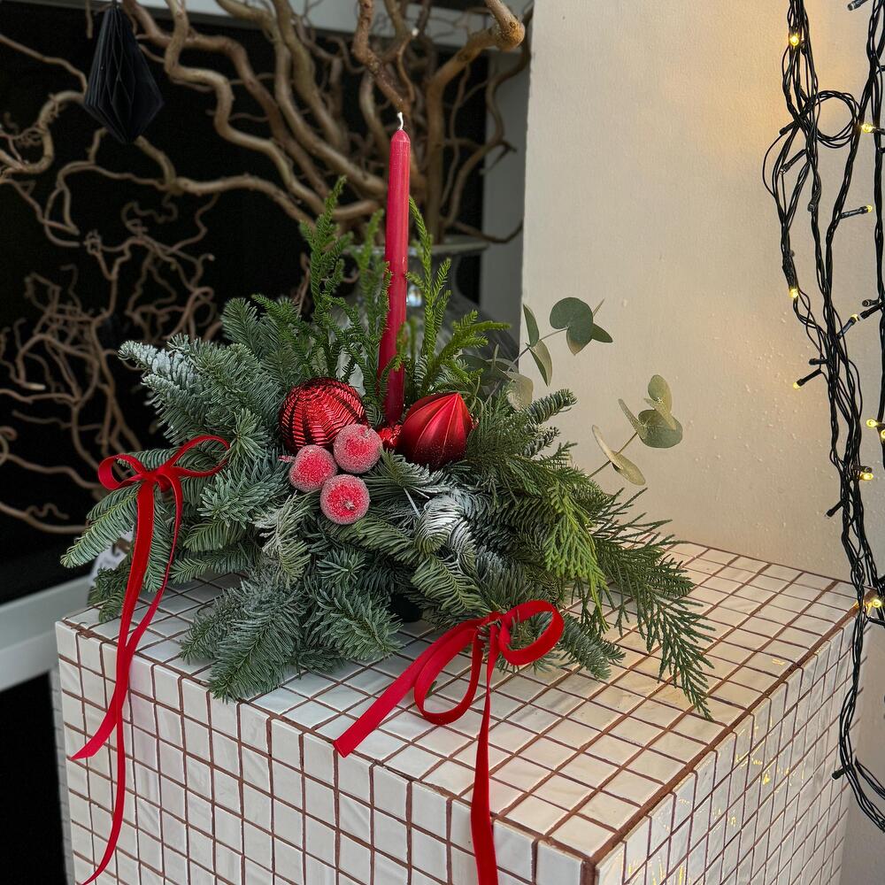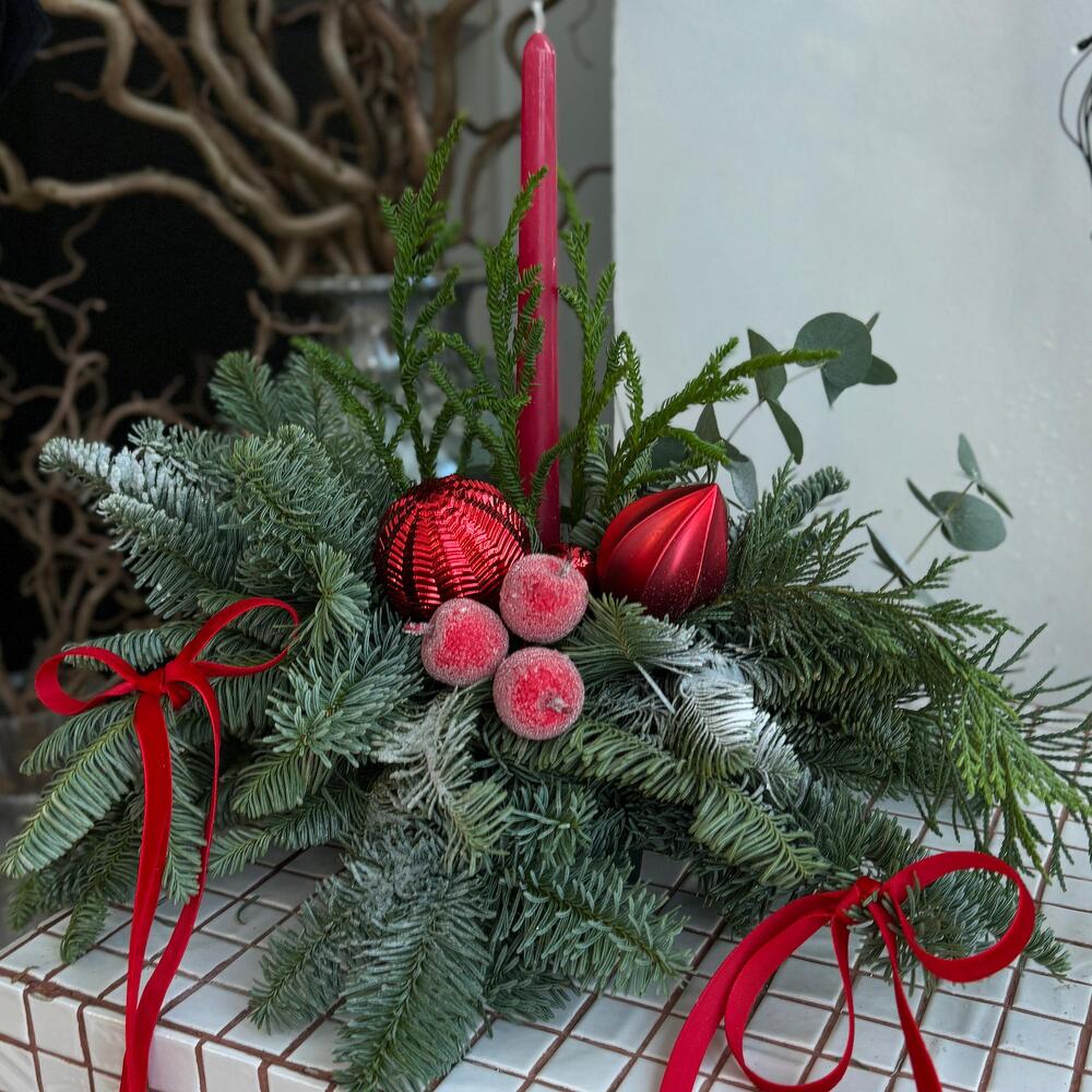 НАСТОЛЬНАЯ КОМПОЗИЦИЯ СО СВЕЧЕЙ ИЗ АРОМАТНОЙ ХВОИ Ароматная Новогодняя , а также Рождественская композиция из зимней хвои , станет чудесным подарком к празднику.