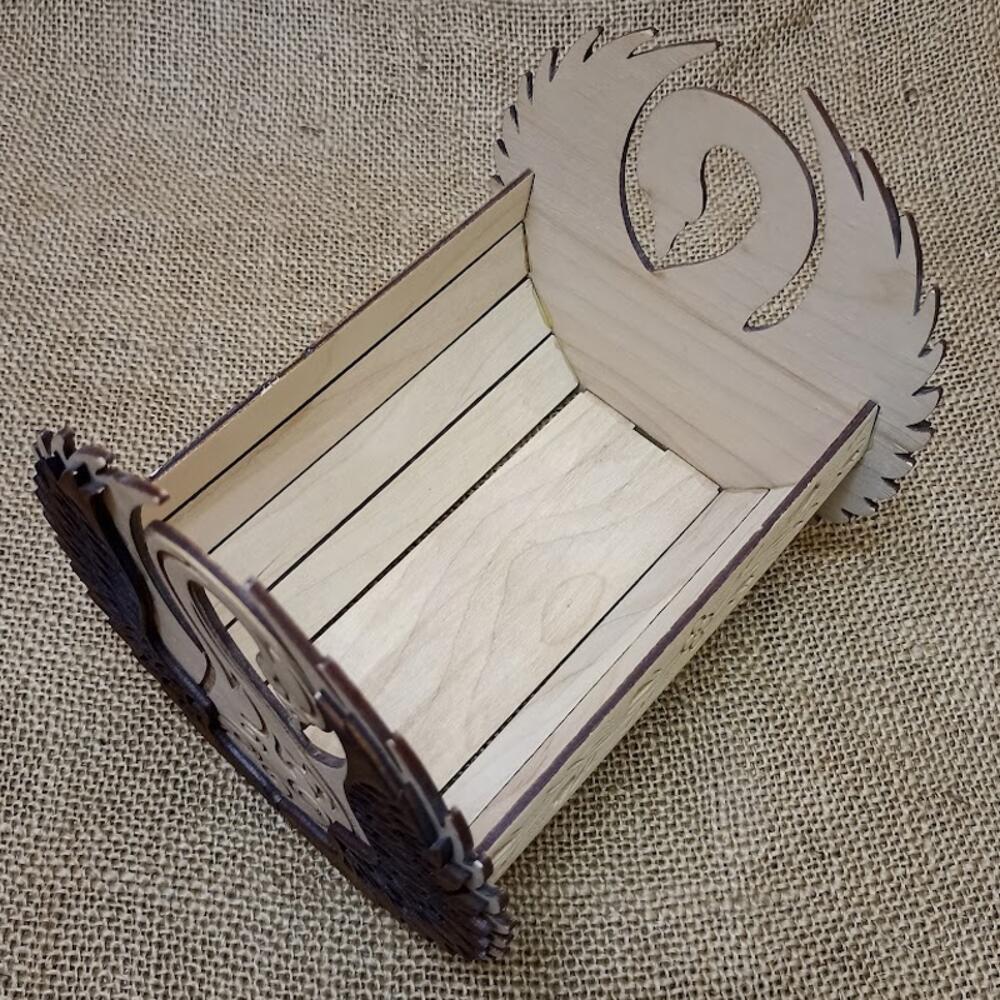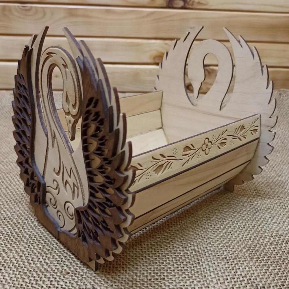 Корзинка из фанеры в форме лебедя представляет собой элегантное и изысканное украшение для стола или подарка. Изготовлена из качественной фанеры, она обладает прочной конструкцией, что делает ее долговечным аксессуаром для хранения различных мелочей или угощений. Благодаря своей форме в виде лебедя, эта корзинка добавляет нотку изящества и стиля к любому интерьеру. Ее изогнутые линии и детали создают впечатление легкости и изящества, что делает ее привлекательным элементом декора на любом столе или полке. Корзинка может использоваться для размещения конфет, печенья или других лакомств на столе во время различных мероприятий или праздников. Ее удобный размер позволяет разместить достаточное количество угощений для гостей, а стильный дизайн придает особый шарм столу. Кроме того, такая корзинка может служить в качестве оригинальной упаковки для подарков. Благодаря своему необычному виду, она добавит эксклюзивности и индивидуальности любому подарку, делая его еще более запоминающимся и привлекательным. Корзинка из фанеры в форме лебедя — это не только практичный и функциональный предмет, но и стильный элемент декора, способный подчеркнуть изысканный вкус и создать уютную атмосферу в помещении. Изделие выполнено только из экологичных материалов, и окрашено натуральными пропитками. Внешний размер (Ш * Г * В): 15 * 15 * 15 см