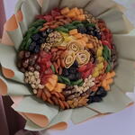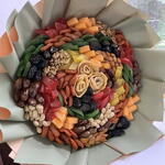Кешью - 150 гр. Бадам - 150 гр. Кепкен өрік - 200 гр. Кепкен инжир - 150 гр. Кепкен манго - 100 гр. ківі кептірілген жеміс - 100 гр. кептірілген папайя - 150 гр. қабығы алынған грек жаңғағы - 150 гр. манго текшелері - 200 гр. тамырлы қара өрік - 200 дана финиктер тунис - 200 гр.