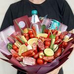 Лайм - 1 дана Дизайнерлік қаптама - 2 дана Перец чили - 4 дана Колбаски охотничьи - 30 дана зелень пучок - 1 дана лимон дольки - 3 дана черри помидоры - 10 дана колбаски кабанос - 5 дана орех пекан в скорлупе - 5 дана чечил палочками - 10 дана чечил косичка - 1 дана колбаса сырокапченная (куски) - 4 дана