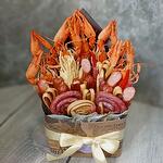 Дизайнерлік қаптама - 2 дана Перец острый - 2 дана Сыр косичка - 1 дана Колбаски охотничьи - 9 дана колбаски копченые - 2 дана рыбка сушеная - 4 дана қайнатылған шаян - 7 дана чечил палочками - 15 дана