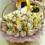Корзина тюльпанов в любое время года - повод удивить и обрадовать даже самую взыскательную и требовательную натуру! Подарите зефирную корзину- это тот подарок, от которого захватывает дух! Состав: яичный белок пастеризованный, сахар, агар-агар, фруктовое пюре, лимонная кислота, пищевой краситель