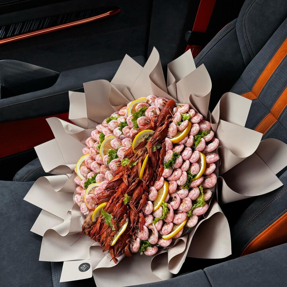 Лимон - 1 дана Салат жапырақтары - 2 дана қайнатылған шаян - 7 дана креветки вареные - 20 дана
