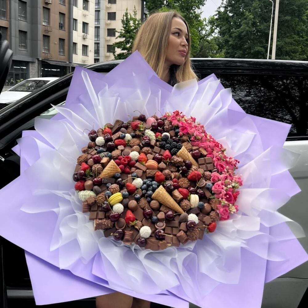 Құлпынай - 20 дана Малина - 100 гр. Ежевика - 100 гр. Merci - 3 дана Шоколадные конфеты - 30 дана Жүзім - 125 гр. Черешня - 120 гр. Kinder bueno - 1 дана Kinder chocolate - 6 дана Raffaello - 10 дана Ferrero rocher - 10 дана Спрей роза - 10 дана Ritter sport - 3 дана Milka - 2 дана toffifee - 12 дана milka конфеты - 8 дана финики в бельгийском шоколаде - 10 дана