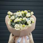 Нежнейший букет из 11 веток лизиантуса (эустом) и веточек эвкалипта в брендированном оформлении