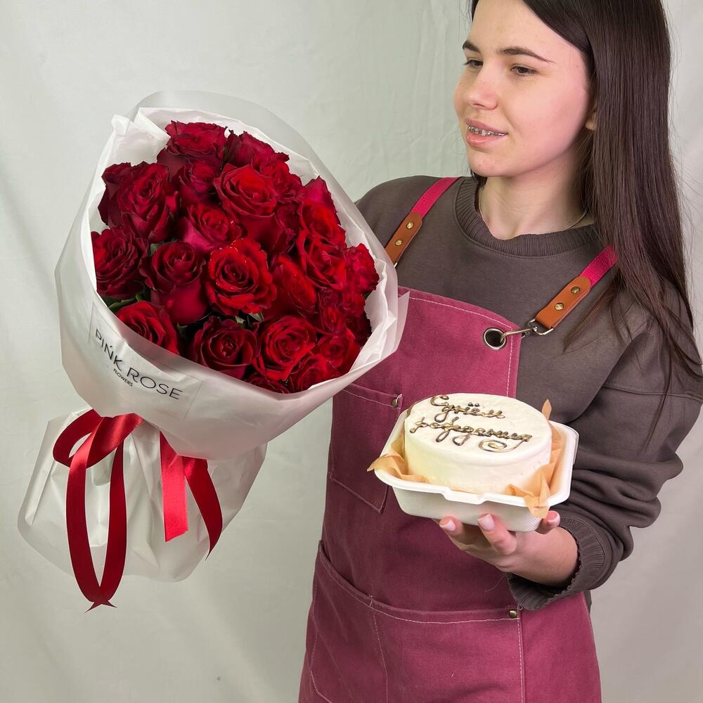 15 красных роз + бенто торт