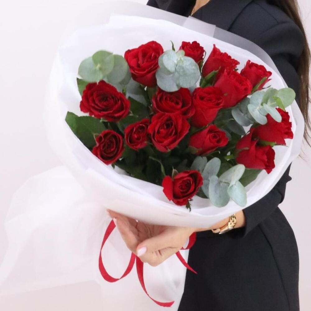 15 қызыл раушан және эвкалипт 15 қызыл раушан эвкалиптпен