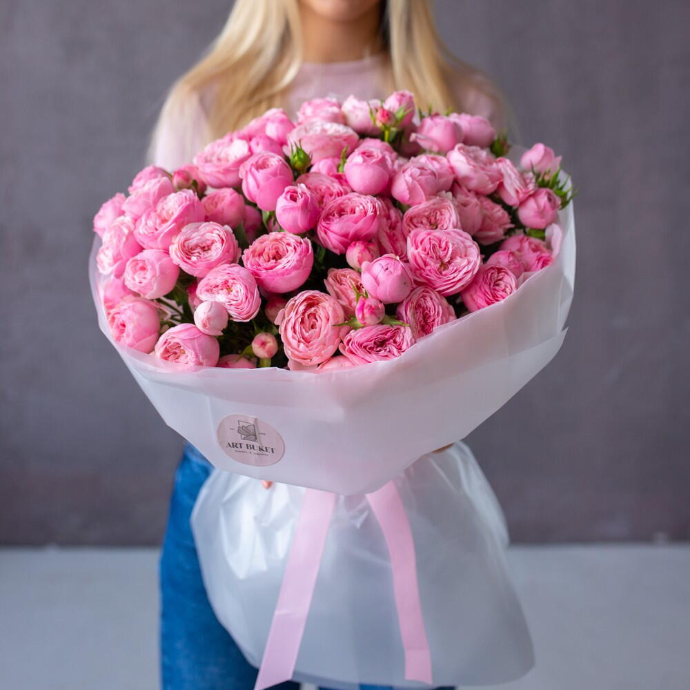 Таспа - 1 дана пион тәрізді бұта раушаны - 15 дана Безендіру - 1 дана