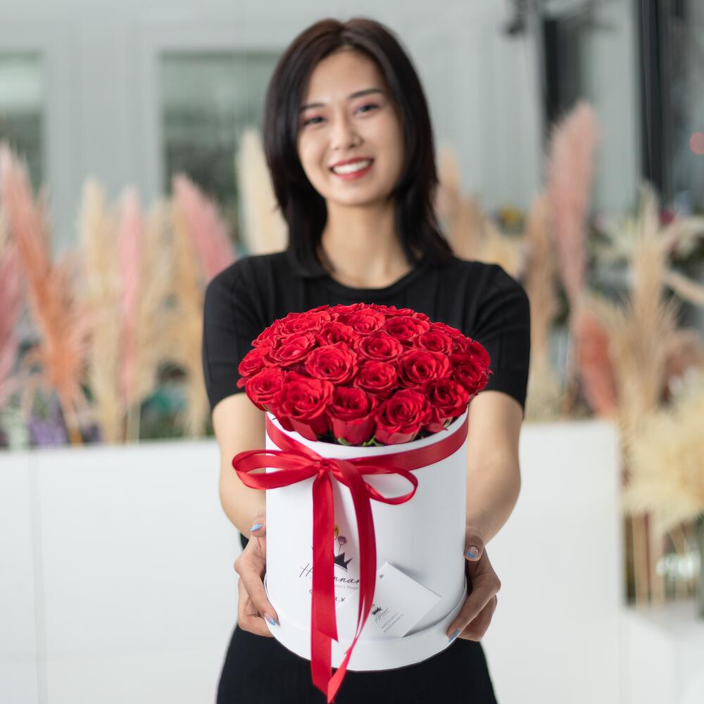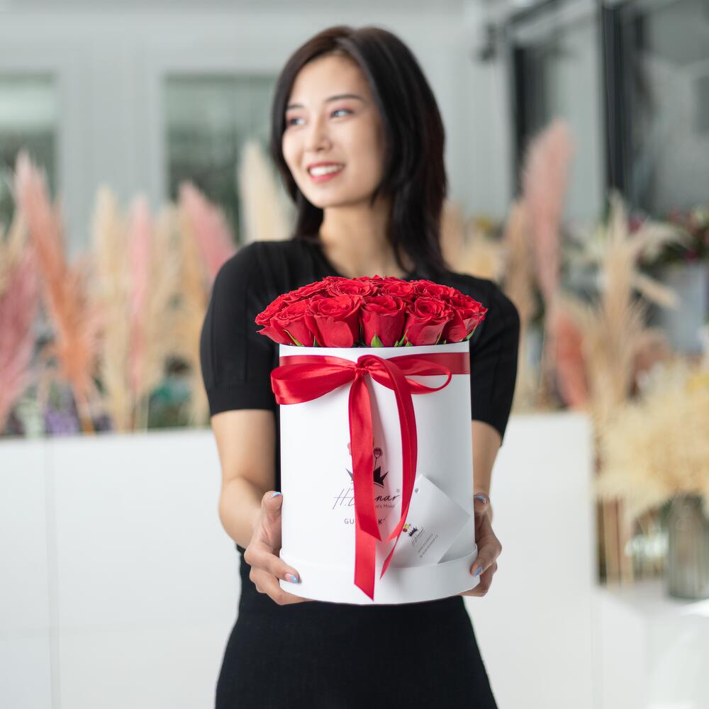 Ақ қораптағы 25 қызыл раушан, сүйіктілерге, туыстарға, жақындарға және достарға арналған тамаша сыйлық нұсқасы. Қораптағы тамаша раушандар керемет көңіл-күй мен ұмытылмас эмоцияларды сыйлайды. H.Bonnar-дың гүл шоқтарын дүниежүзі бойынша жеткізіліммен тапсырыс беріңіз, еркелетіңіз және таң қалдырыңыз.