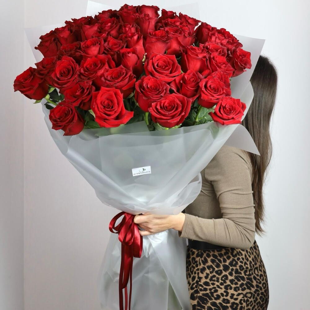 Букет из 51 высокой розы: впечатление с первого взгляда Когда нужен роскошный жест, который говорит сам за себя, выбирайте букет из 51 высокой розы. Стройные, идеально свежие цветы с длинными стеблями – это воплощение элегантности и статуса. Такой букет станет главным акцентом любого праздника или изысканным признанием в чувствах. Это подарок, который невозможно не заметить, он покоряет своей масштабностью и утончённой красотой. Покажите, что ваши чувства – такие же сильные и впечатляющие, как этот букет. С ним вы точно оставите яркий след в сердце получателя!