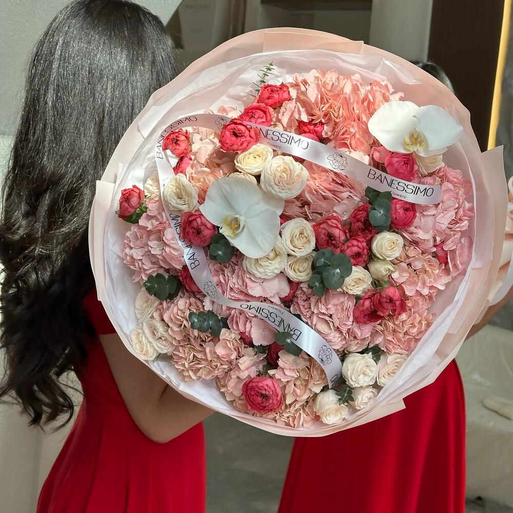 Эвкалипт - 1 дана орхидея - 2 дана Безендіру - 1 дана Қызғылт Гортензия - 8 дана бомбастик роза пионовидная - 8 дана juliette raspberry - 7 дана