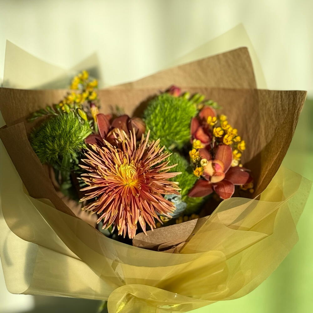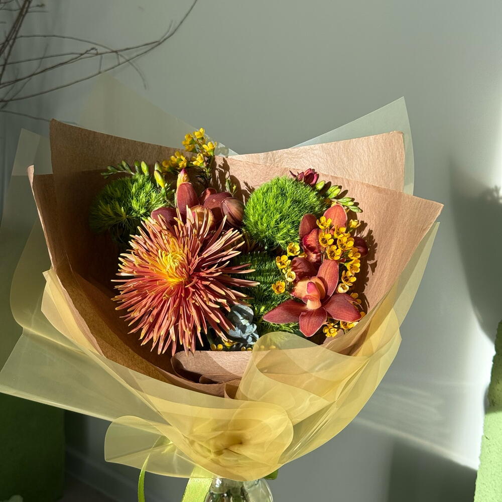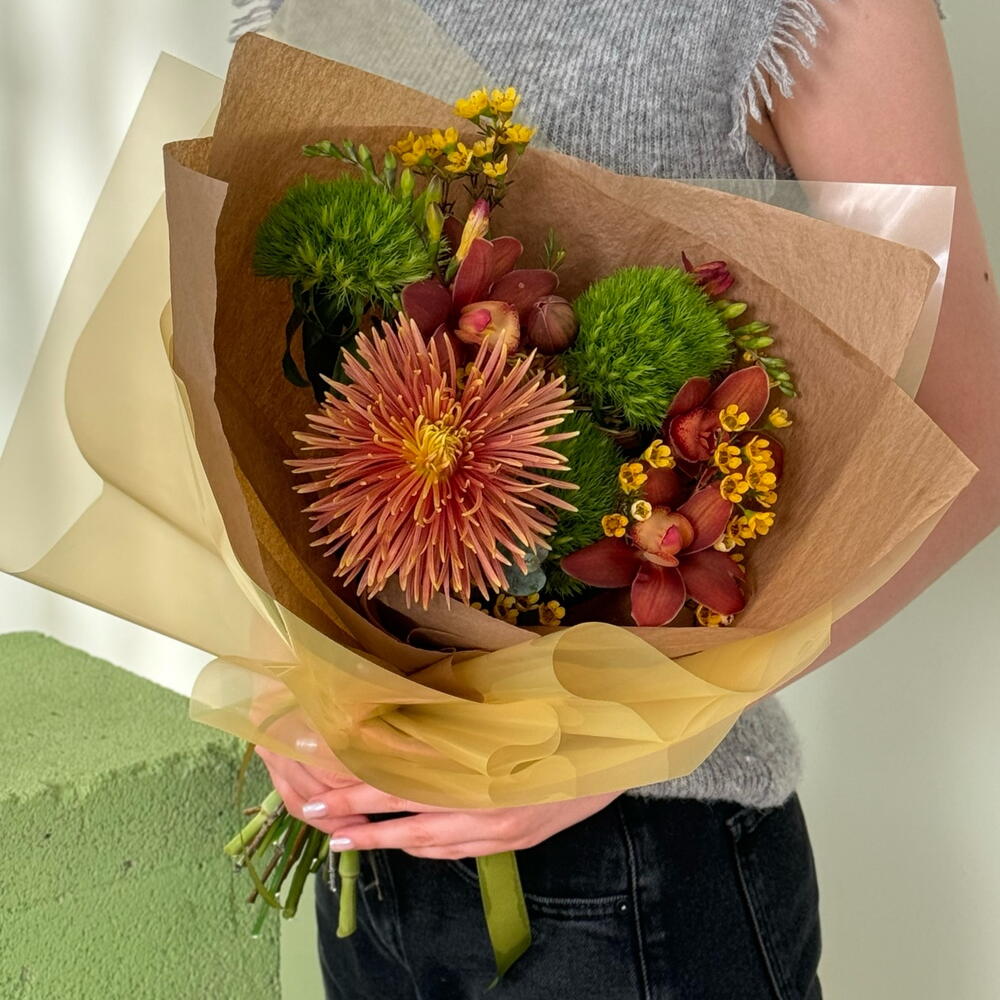 Астильба - 1 дана Фрезия - 2 дана ЦИМБИДИУМ - 3 дана хризантема игольчатая - 1 дана диантус киви - 2 дана Хамелациум Блонди - 1 дана