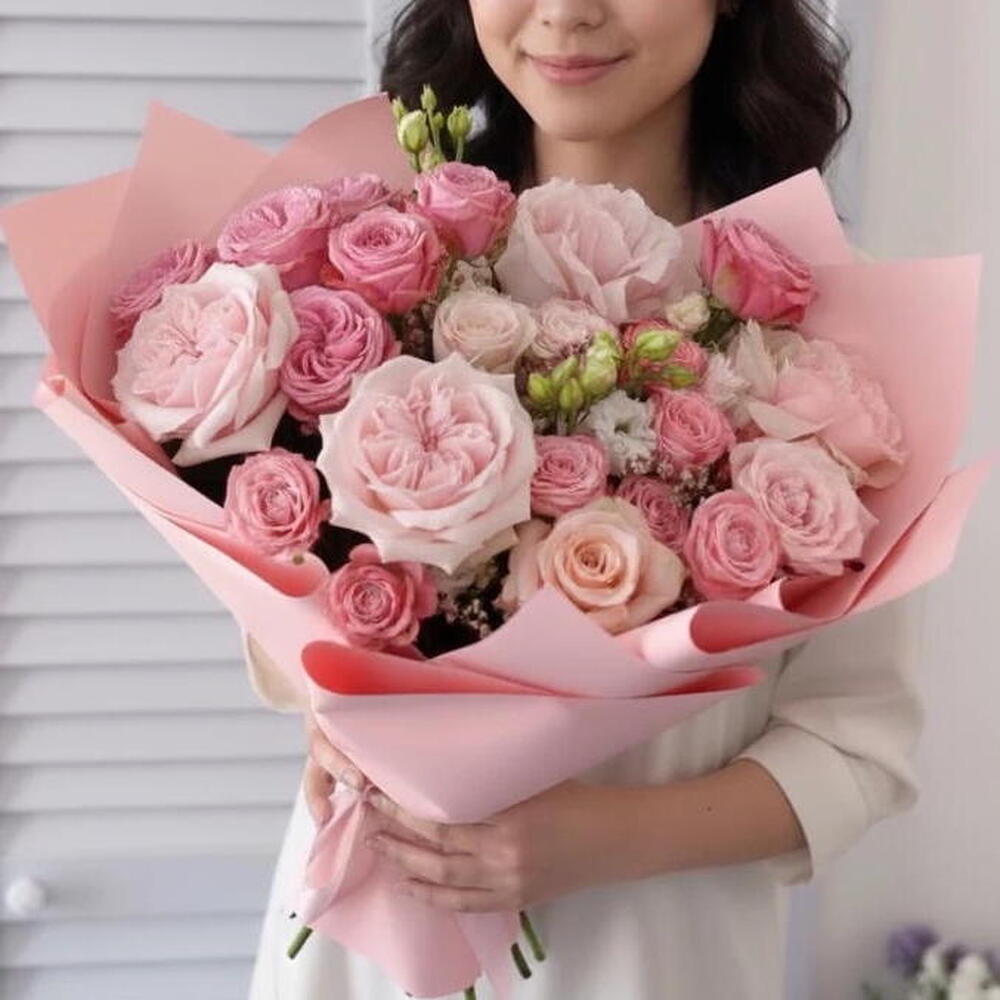 Авторский букет “Pink Grace” — это выражение женственности, утончённости и элегантности в каждом лепестке. В композиции гармонично сочетаются крупные пышные розы и миниатюрные кустовые розы в различных оттенках розового: от нежного кремово-пудрового до насыщенного клубничного. Букет выглядит воздушным, романтичным и по-настоящему праздничным, благодаря разнообразию форм бутонов и их роскошной текстуре. Такая композиция станет идеальным подарком для важных событий: дня рождения, юбилея, годовщины, proposal, 8 марта или просто для того, чтобы порадовать близкого человека без повода. Современная упаковка в мягком пастельно-розовом оттенке подчёркивает естественную красоту цветов и делает букет особенно утончённым и фотогеничным.