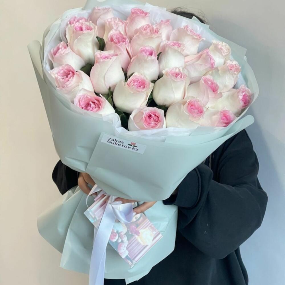 Красивый, пышный букет. Видно что свежий. Но, я просила положить пустую открытку чтобы самой подписать - но не положили. А так, все ок