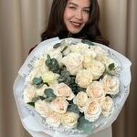 Изысканный букет из нежных белых роз с ароматным эвкалиптом.