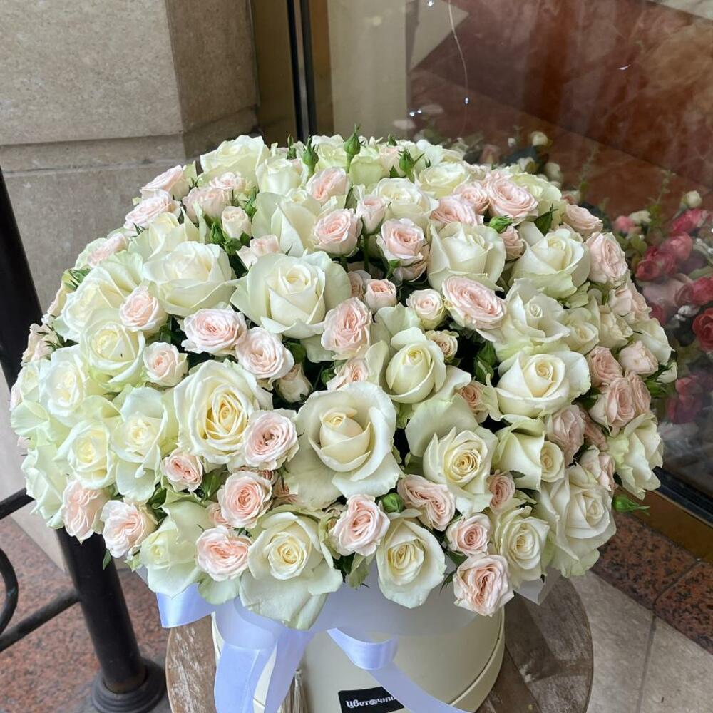 Қорап - 1 дана раушан - 51 дана бұта раушандары - 10 дана