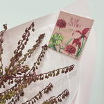 рускус жапырақтары - 5 дана бір дана диантус - 3 дана еркіндік раушандары - 3 дана лилия пион бұта - 1 дана pieris janonica - 2 дана