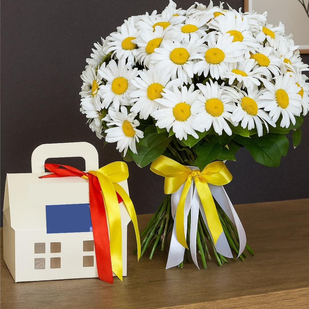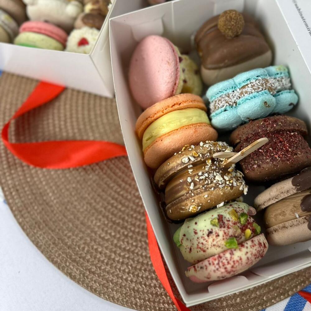 Идеальное сочетание сладости и нежности! В набор входит: 🌼 Букет свежих ромашек — символ заботы и искренности. Упакован в крафт-бумагу и перевязан лентой. 🍬 Фирменный бокс макарон — 9 воздушных пирожных с разными вкусами (шоколад-нутелла, фисташка-малина, клубничный чизкейк и др.) в красивой коробке с ручкой и бантом. 💌 Внутри — мини-открытка для пожеланий. Подходит для любого повода: день рождения, благодарность, комплимент или просто “сделать день”.